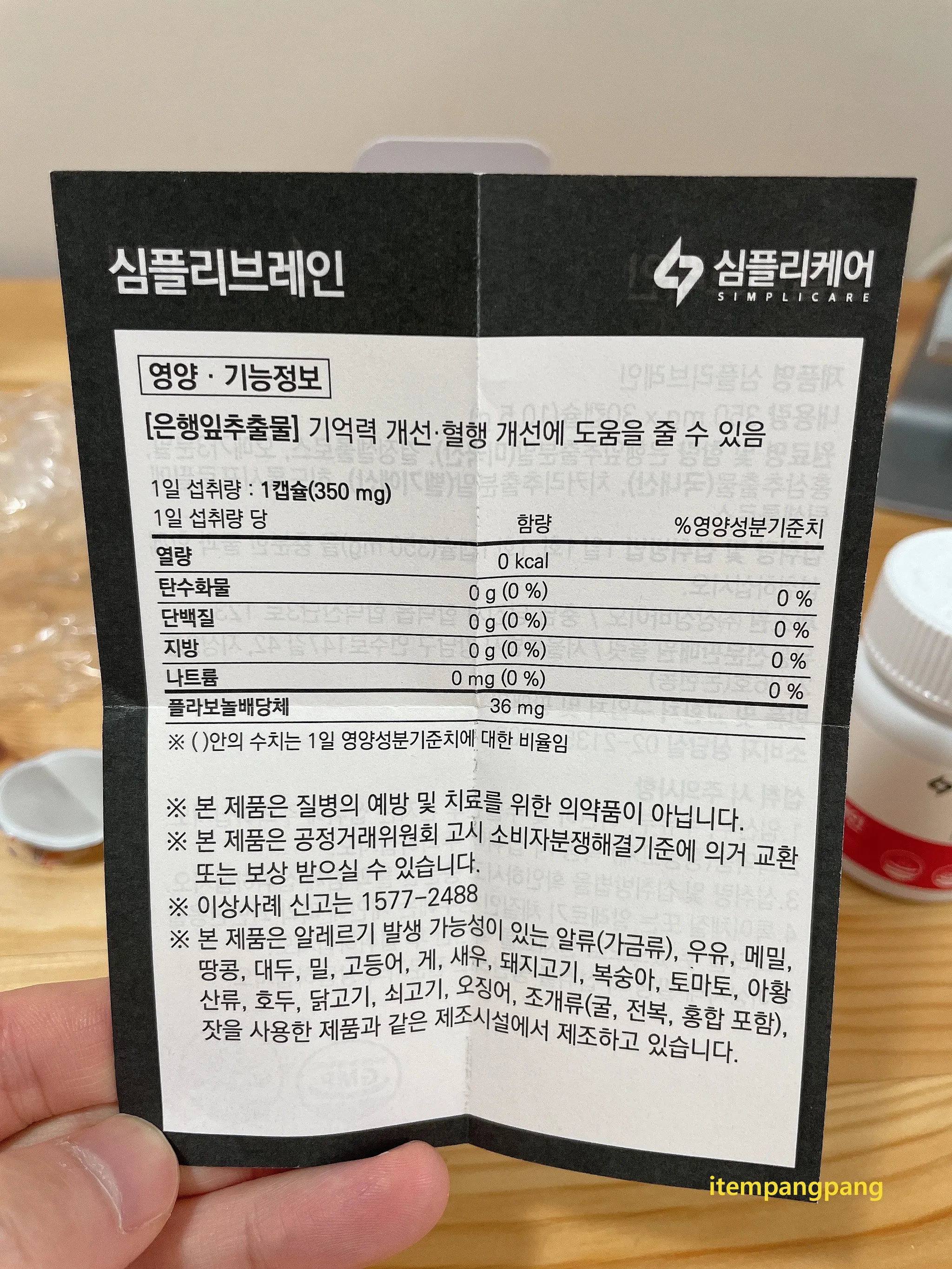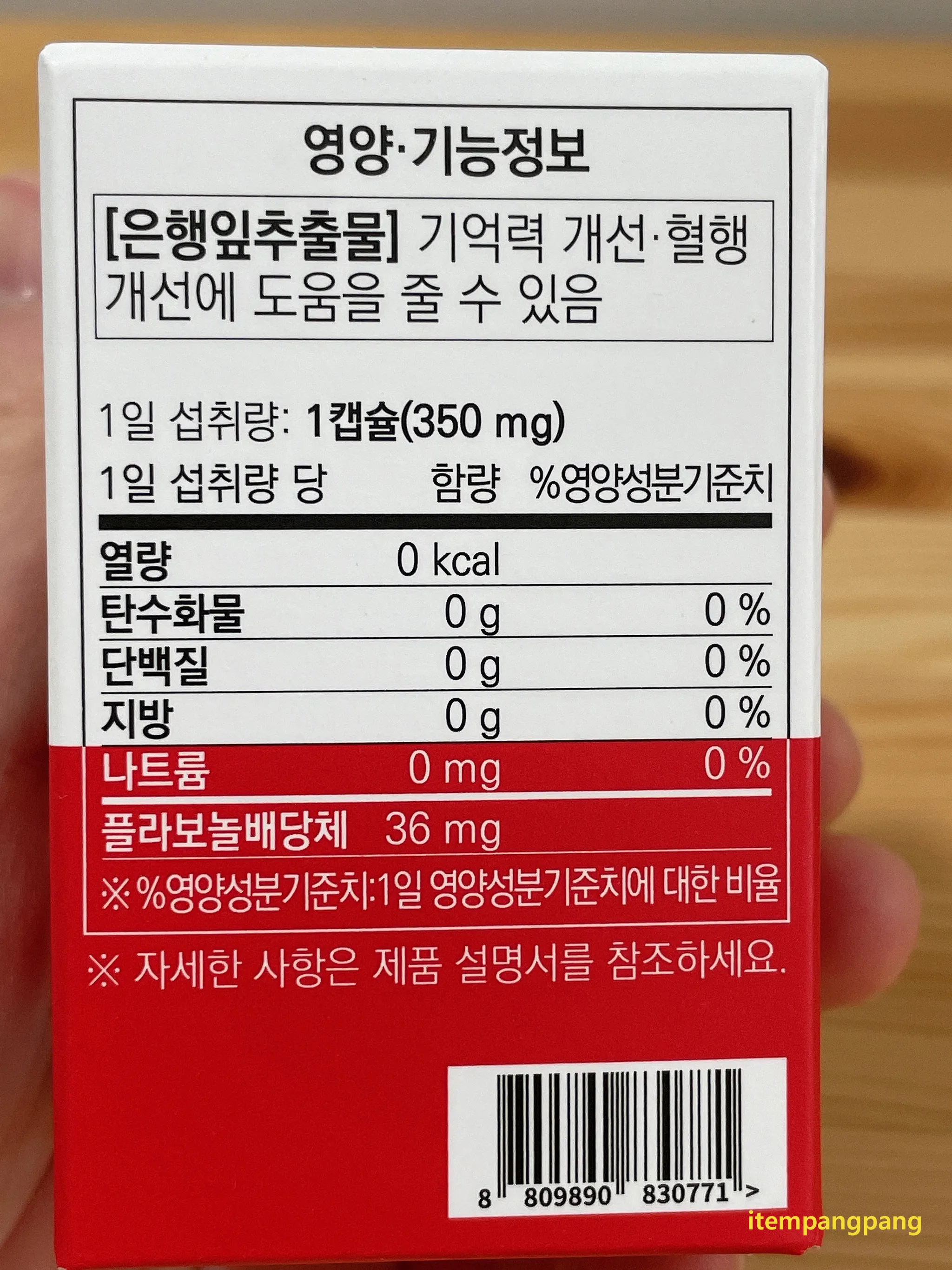 영양.기능정보에 [은행잎추출물] 기억력 개선. 혈행 개선에 도움을 줄 수 있음 표시 되어 있습니다.