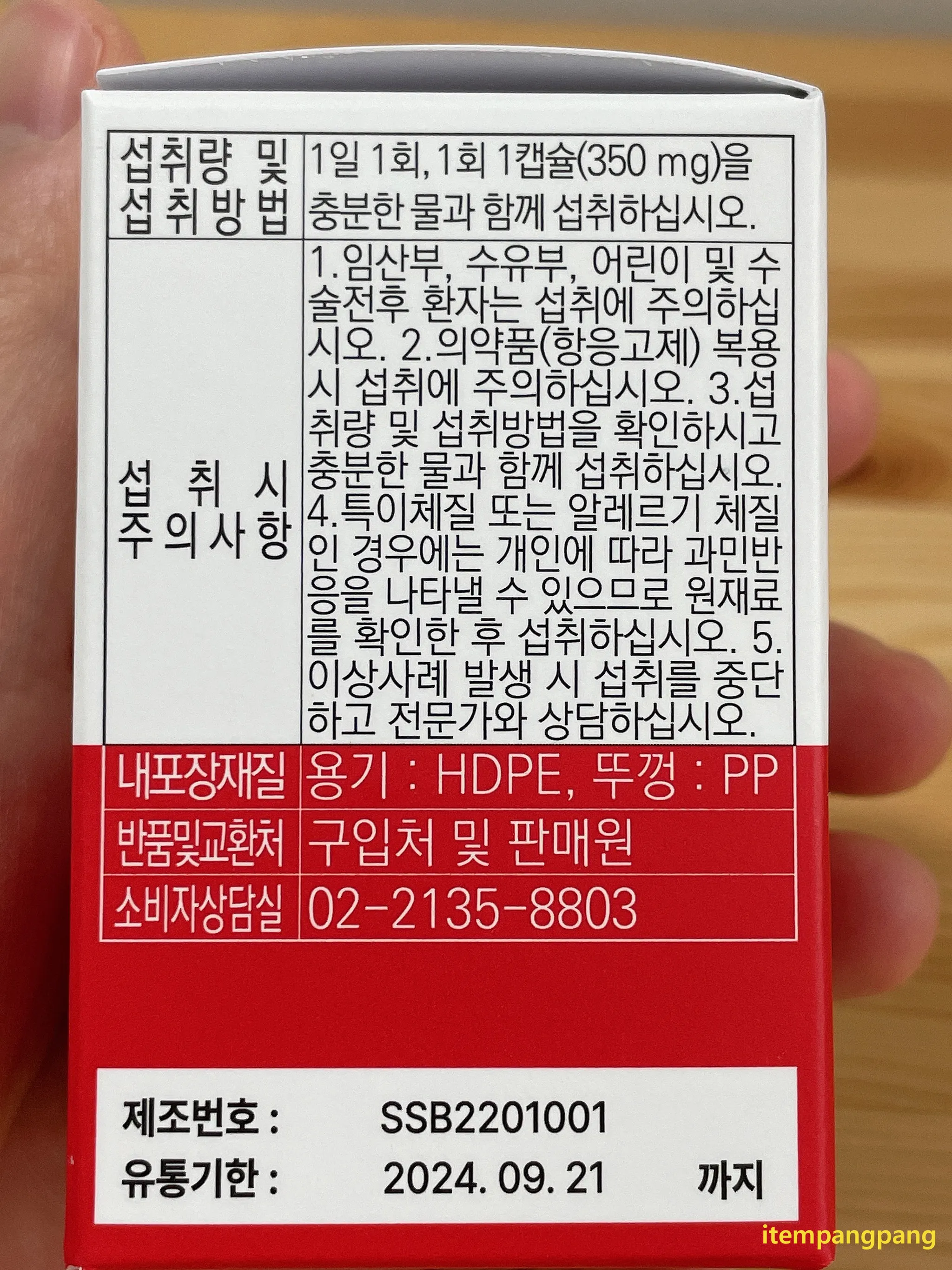 1일 1회, 1회 1캡슐을 충분한 물과 함께 섭취