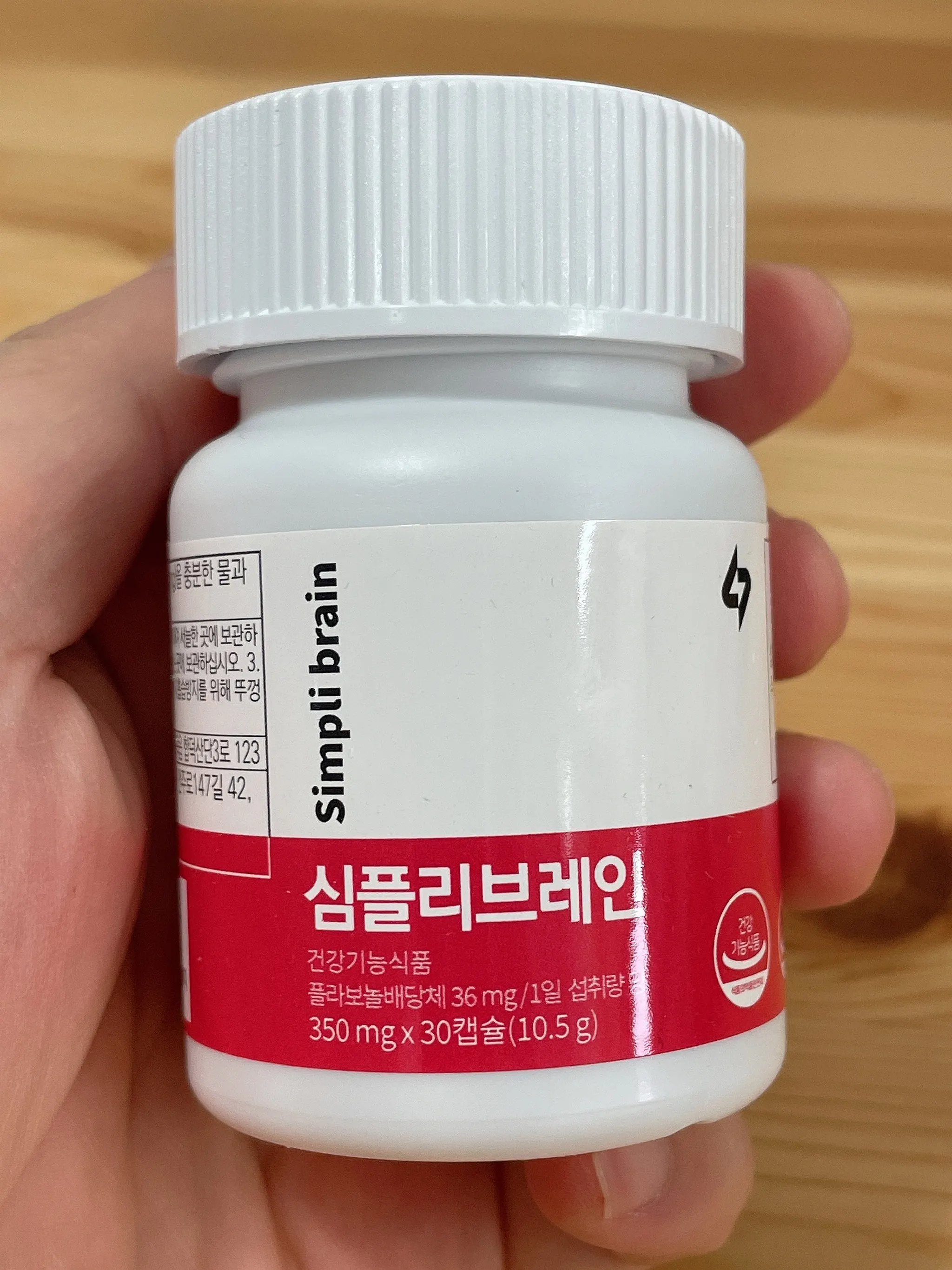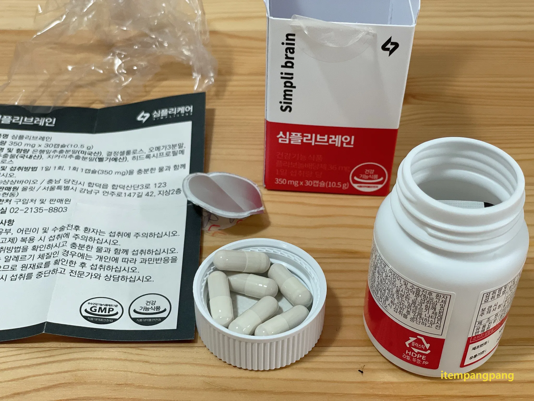 심플리브레인 캡슐입니다. 사진상으로는 크게 보이나 실제로는 한 번에 먹을 수 있는 적당한 크기입니다.